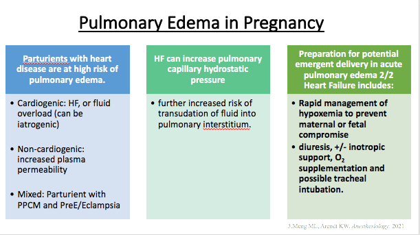 - Normal physiologic changes of pregnancy place parturients at higher risk, and are further compounded by PReE, sepsis, fluid overload and cardiac dysfunction: