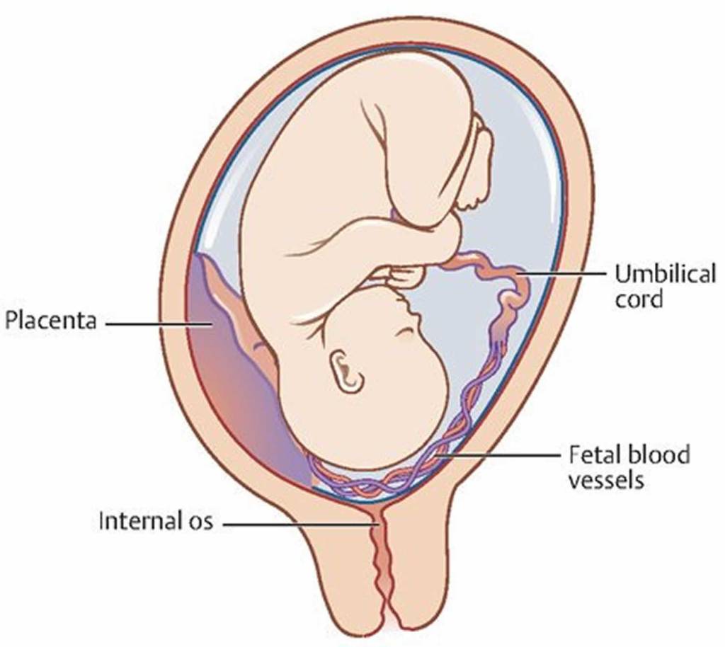 - Placenta will bleed/rupture w/ contractions/pressure with labor and fetal descent