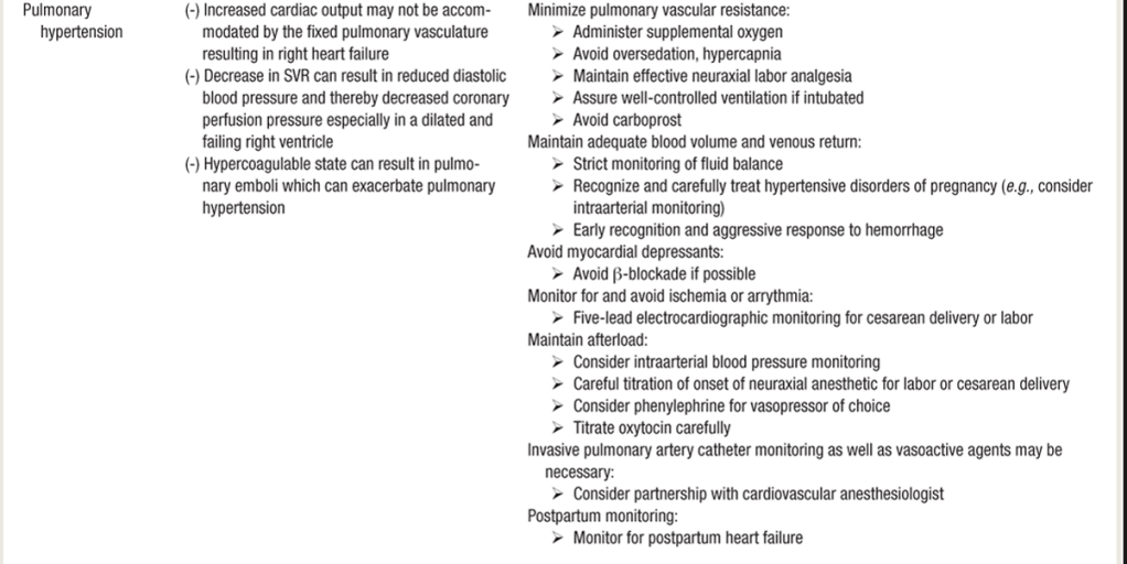 - Any pt w/ pulmonary HTN or right heart compromise – ask obgyn not to exteriorize uterus after delivery – it causes tiny micro air emboli which in normal people isn’t going to cause huge issues, but in compromised pts will increase pHTN and exacerbate right-sided atfailur /PFO shunting.