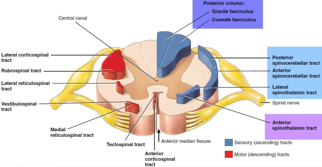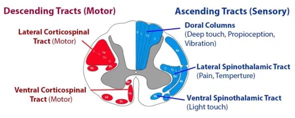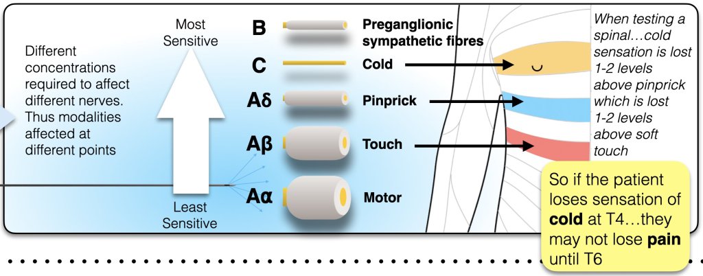 - 2-6 dermatomes lower: anesthesia to cold (C-fibers)