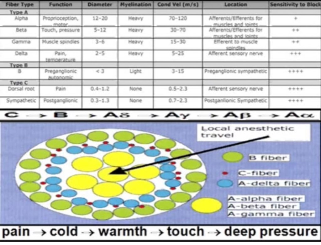 - Then unmyelinated C fibers first (cold, dull, slow pain & visceral pain )