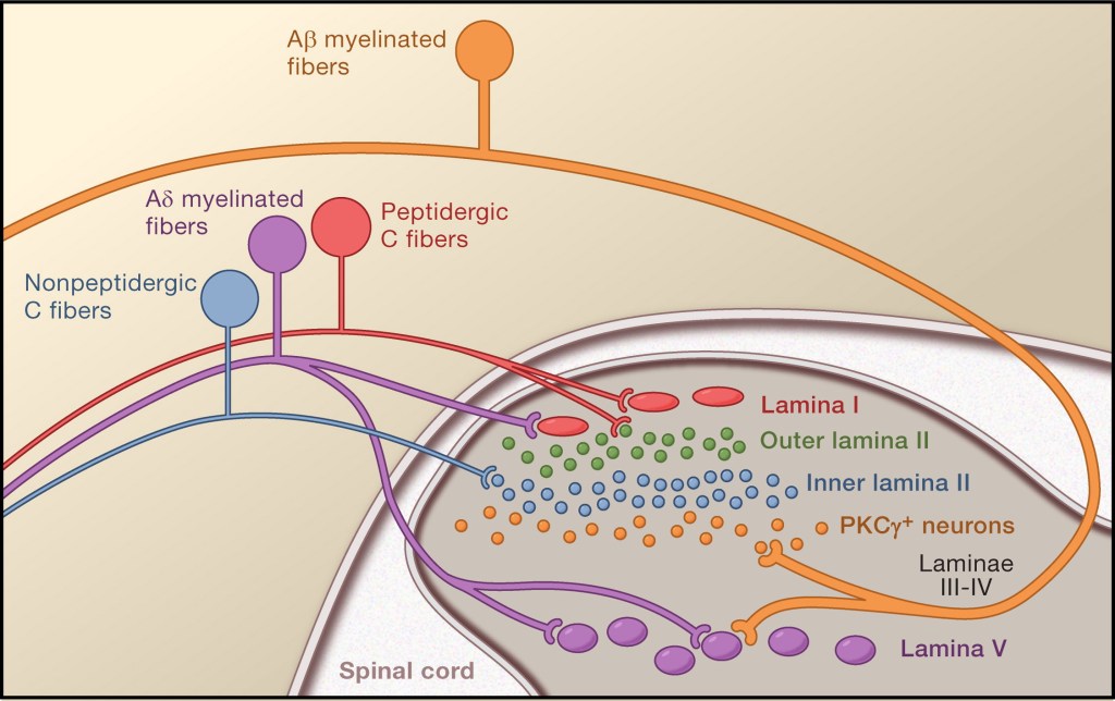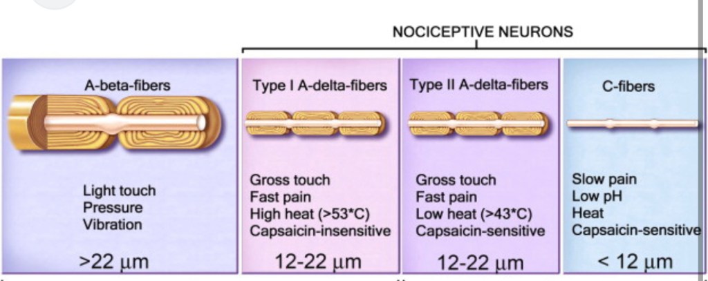 - Aβ fibers transmit tactile sensation (pressure, touch)