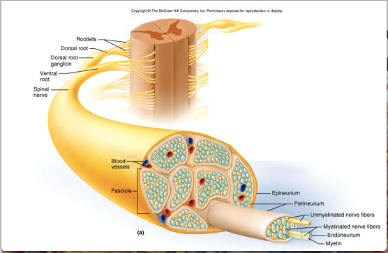 Local anesthetics produce reversible nerve block by blocking sodium passage through the nerve membrane. When LA is injected into the epidural space, several things occur. Most of the injected LA is absorbed into the venous blood, and a large part is retained in epidural fatty tissue. The primary sites of action of an epidurally administered LA are the ventral and dorsal nerve roots that pass through the epidural space. However, based on studies using labeled LAs, LAs can cross the dura and penetrate the spinal cord, but to a lesser extent than their penetration into the spinal nerve roots. The segmental nerve roots are mixed sensory, motor, and sympathetic nerve fibers. Hence, all three types of fibers will be affected (to varying degrees).”