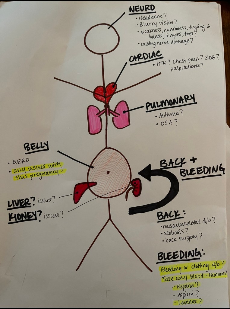 - If mom is in labor & contracting, but full stomach, we still proceed to OR and perform spinal without waiting for NPO time.