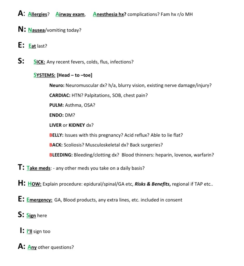 - Antiemetics needed? RSI needed? (Always RSI for OB but consider for non-OB pts)